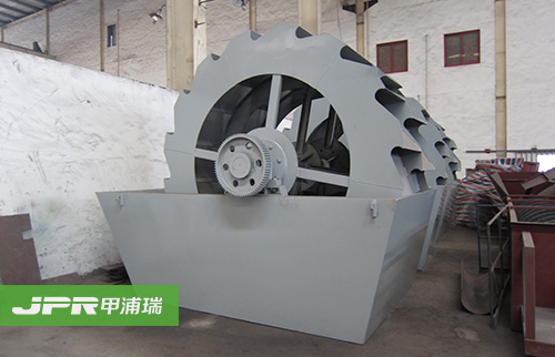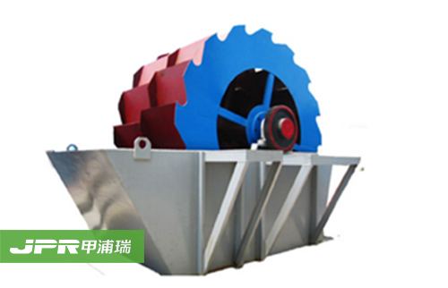 工作時,電機通過三角帶、減速機、齒輪減速后帶動葉輪緩慢轉動,砂石有給料槽進入洗槽中,在葉輪的帶動下翻滾,并互相研磨,除去覆蓋砂石表面的雜質, 同時破壞包覆砂粒的水汽層,以利于脫水;同時加水,形成強大水流,及時將雜質及比重小的異物帶走,并從溢出口洗槽排出,完成清洗作用。干凈的砂石由葉片帶 走,后砂石從旋轉的葉輪倒入出料槽,完成砂石的清洗作用。