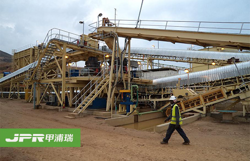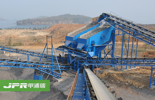 碎石生產(chǎn)線主要由振動(dòng)給料機(jī)、顎式破碎機(jī)、反擊式破碎機(jī)、振動(dòng)篩、膠帶輸送機(jī)、集中電控等設(shè)備組成。為滿足客戶不同的加工需要,可配備圓錐式破碎機(jī)、除塵 設(shè)備等。大塊石料經(jīng)料倉由振動(dòng)給料機(jī)均勻地送進(jìn)鄂式破碎機(jī)進(jìn)行粗碎,粗碎后的石料由膠帶輸送機(jī)送到反擊式破碎機(jī)進(jìn)行進(jìn)一步破碎;細(xì)碎后的石料由膠帶輸送機(jī) 送進(jìn)振動(dòng)篩進(jìn)行篩分,篩分出幾種不同規(guī)格的石子,滿足粒度要求的石子由成品膠帶輸送機(jī)送往成品料堆;不滿足粒度要求的石子由膠帶輸送機(jī)返料送到反擊式破碎 機(jī)進(jìn)行再次破碎,形成閉路多次循環(huán)。成品粒度可按照用戶的需求進(jìn)行組合和分級(jí),為保護(hù)環(huán)境,可配備輔助的除塵設(shè)備。